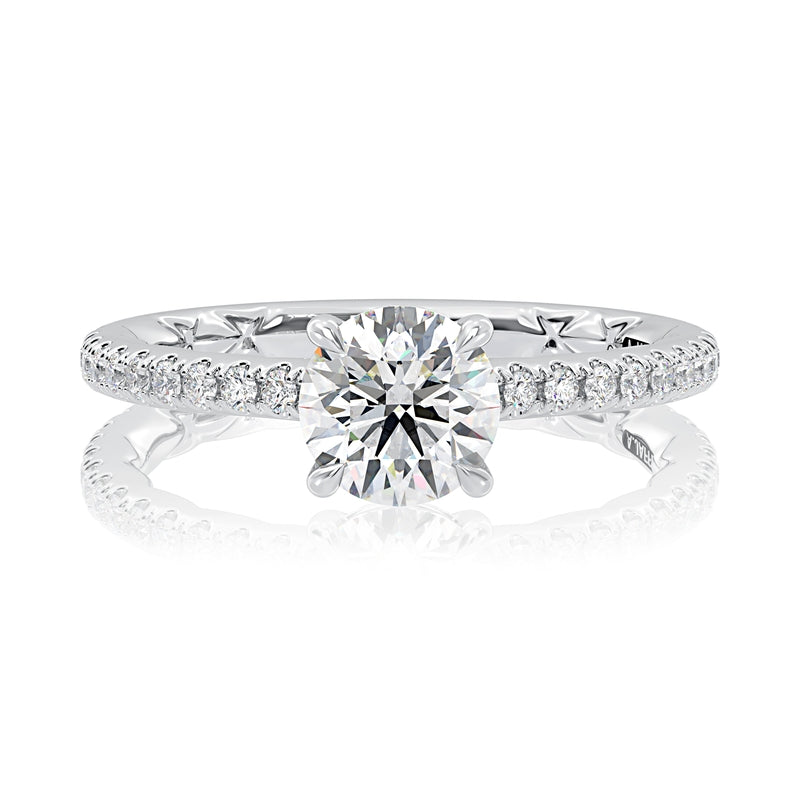 A. Jaffe Claw Prongs Round Diamond Engagement Ring with Pave Band