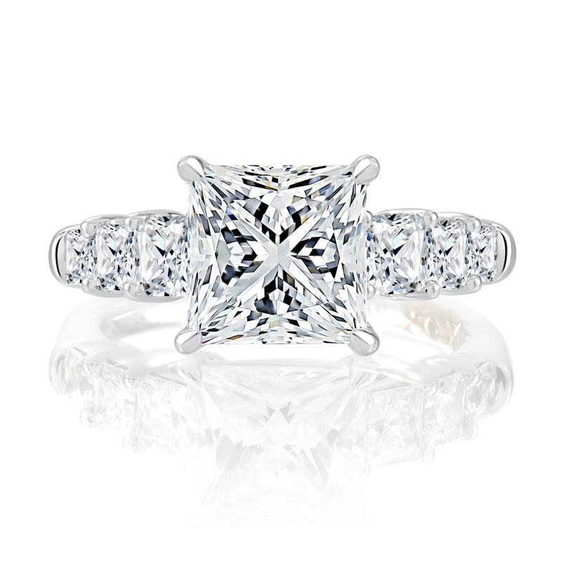 A. Jaffe Four Prong Seven Stone Asscher Diamond Engagement Ring