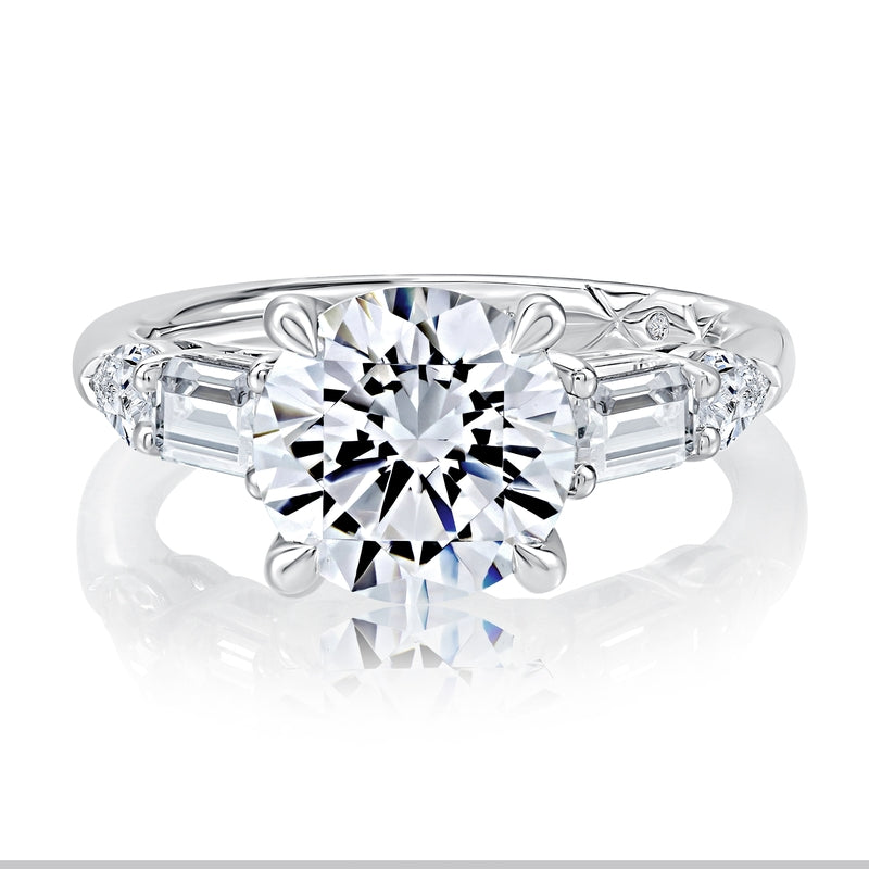 A. Jaffe Floral Milgrain Accent Round Center Solitaire Engagement Ring