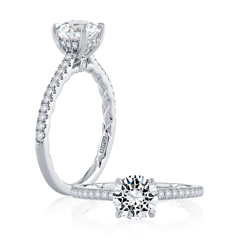 A. Jaffe Hidden Halo Round Center Diamond Engagement Ring with Diamond Band