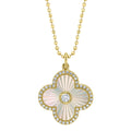 0.18CT DIAMOND & 0.94CT MOTHER OF PEARL 14K Y/G BEZEL RIBBED CLOVER FACETED BALL CHAIN NECKLACE