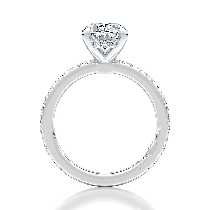 A. Jaffe Diamond Halo Round Cut Engagement Ring with Pave Band
