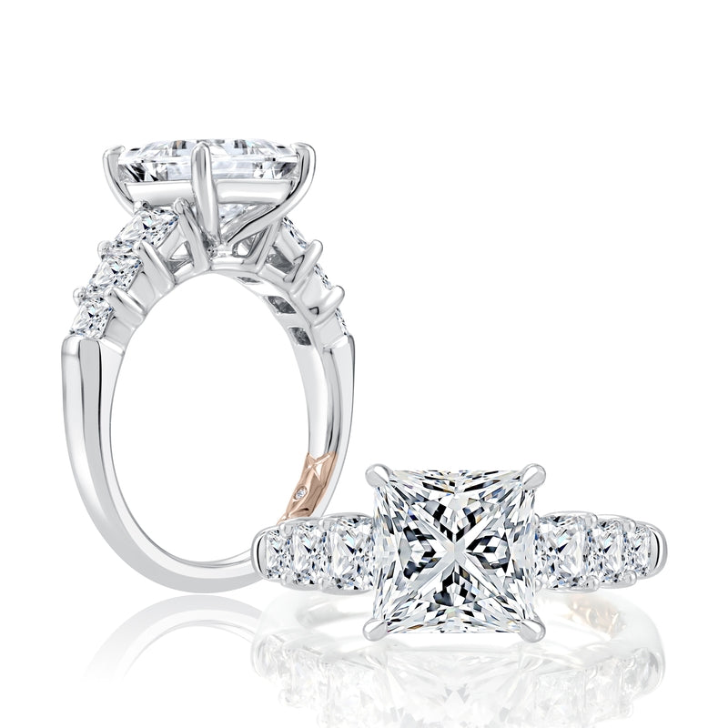 A. Jaffe Four Prong Seven Stone Asscher Diamond Engagement Ring
