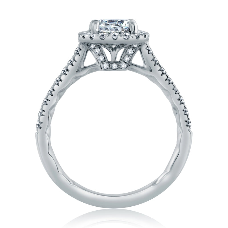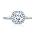 A. Jaffe Intricate Milgrain Accent Gallery Detail Round Center with Cushion Shaped Halo Engagement Ring